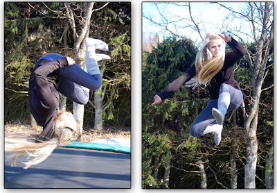 Kaktu tuli hieman kolmen jälkeen tallille ja päätimme mennä pomppimaan trampoliinille joksikin aikaa. Otimme mitä hullunkurisimpia kuvia toisistamme sekä yhteiskuvia, mutta osa niistä on sellaisia mitä en täällä blogissa halua julkistaa :D